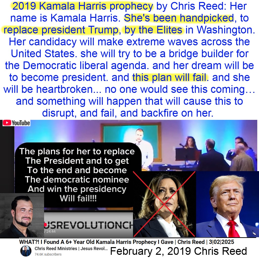 2019 Kamala Harris losing prophecy FULFILLED, by Chris Reed on 3/2/25. See partial transcript and video link below: