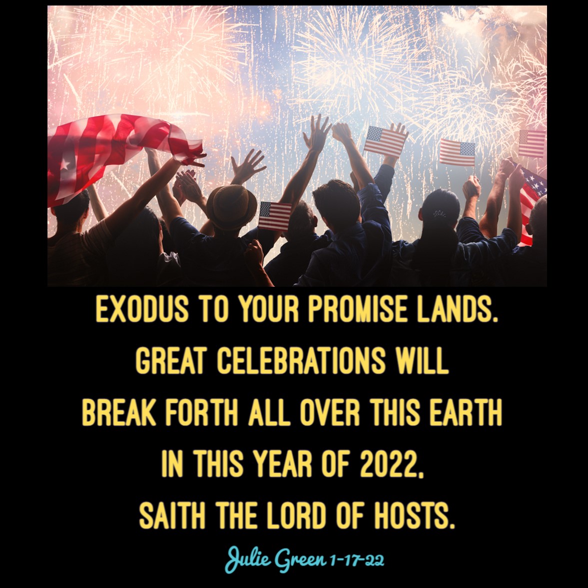 Great celebrations will break forth all over this Earth in this year of 2022, saith the Lord of Hosts. (Julie Green 1-17-22)