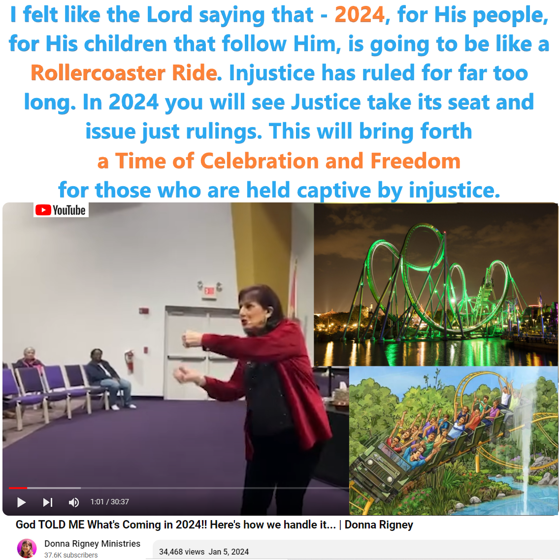 2024 will be like a Rollercoaster, PROPHECY by Donna Rigney on 1/5/24. See partial transcript and video link below: