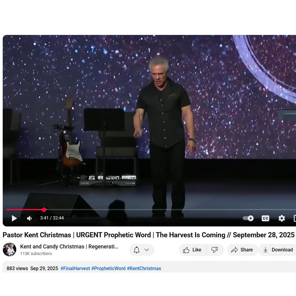 Starting 2026 through the year of 2030 will be the final harvest in the earth. All of these prosperity preachers stand on television and make all these lies and tell you to sow seeds. God said, I’m shutting them down. Prophecy by Kent Christmas on 9/29/25. See partial transcript and video link below: