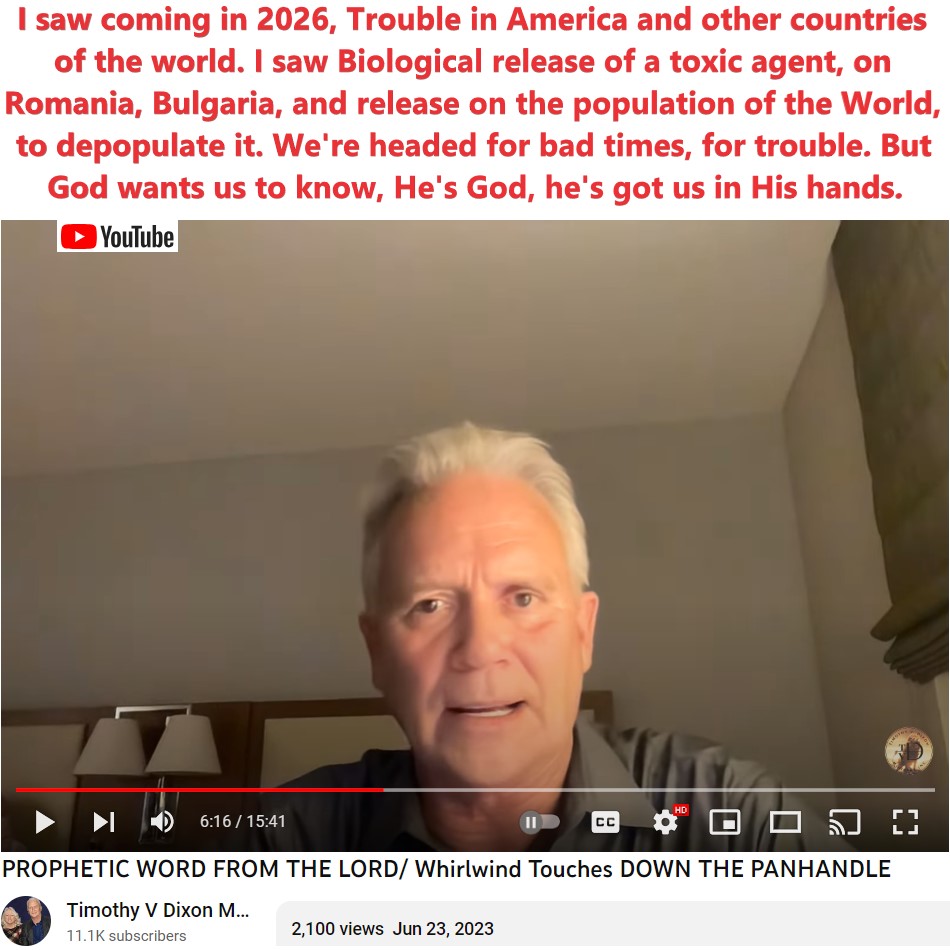 2:00 – I saw coming in 2026, Trouble in America and other countries of the world. I saw Biological release of a toxic agent, on Romania, Bulgaria, and release on the population of the World, to depopulate it. We’re headed for bad times, for trouble. But God wants us to know, He’s God, he’s got us in His hands.