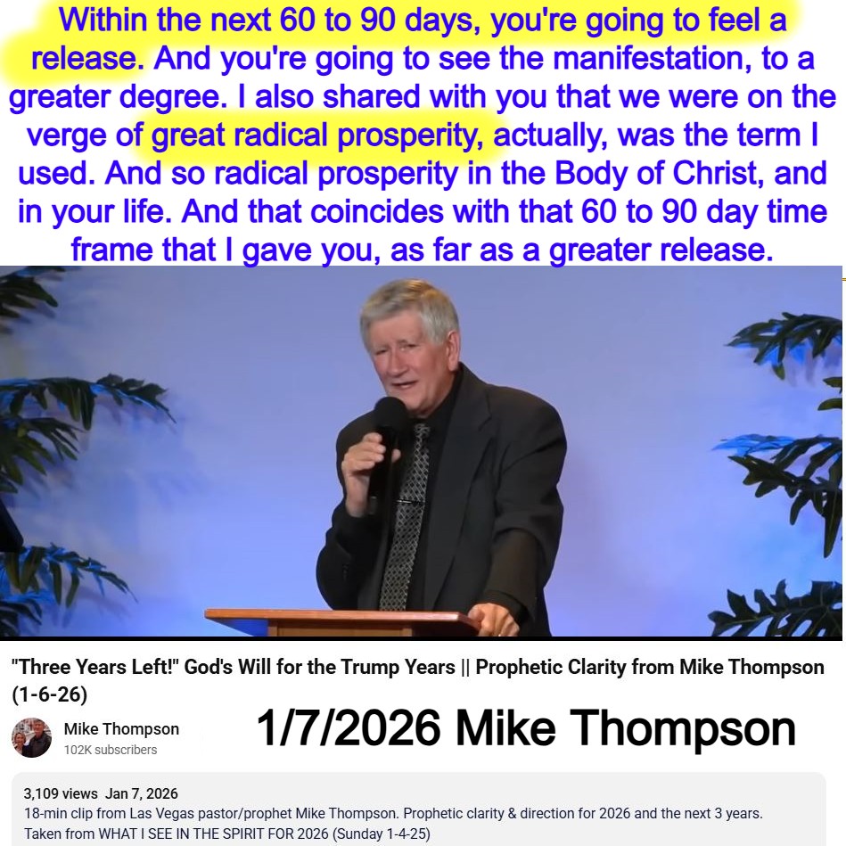 You’re going to feel a release in the next 60 to 90 days. Prophecy by Mike Thompson on 1/7/26. See partial transcript, IA Summary, and video link below: