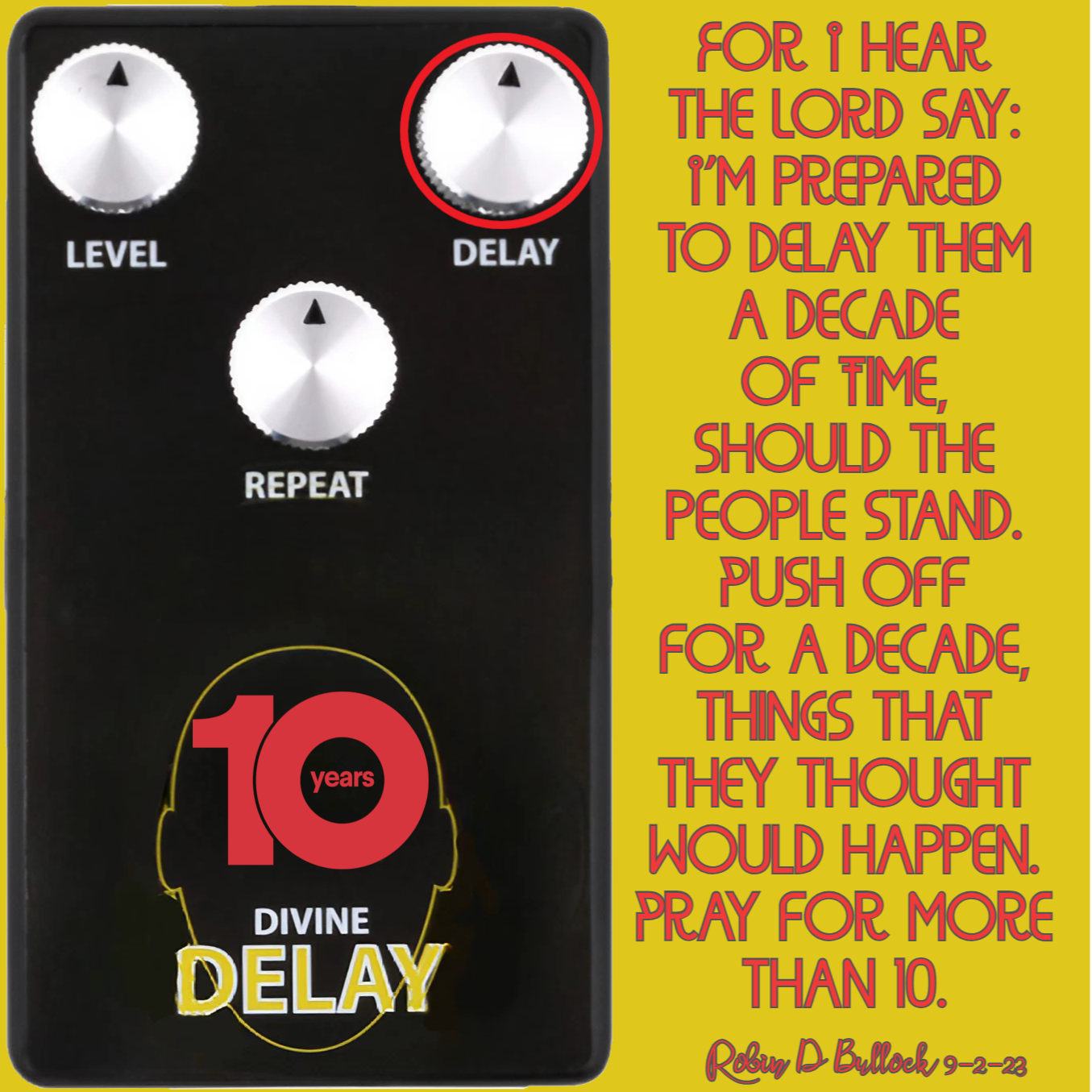 For I hear the Lord say: I’m prepared to Delay them a Decade of Time, should the people stand. Push off for a Decade, things that they thought would happen. Pray for more than 10. (Robin D Bullock 9-2-23)