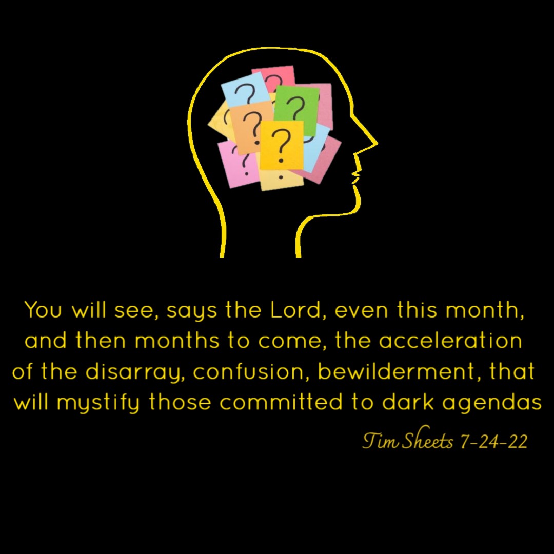You will see, says the Lord, even this month, and then months to come, the acceleration of the disarray, confusion, bewilderment, that will mystify those committed to dark agendas (Tim Sheets 7-24-22)