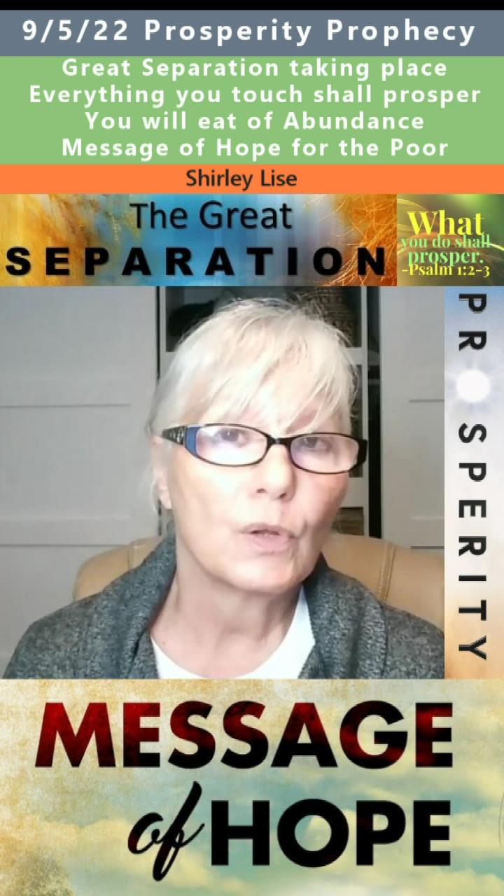 Abundance, Prosperity, Separation, Message of Hope to the Poor prophecy by Shirley Lise on 9/5/22. See partial transcript and video link below: