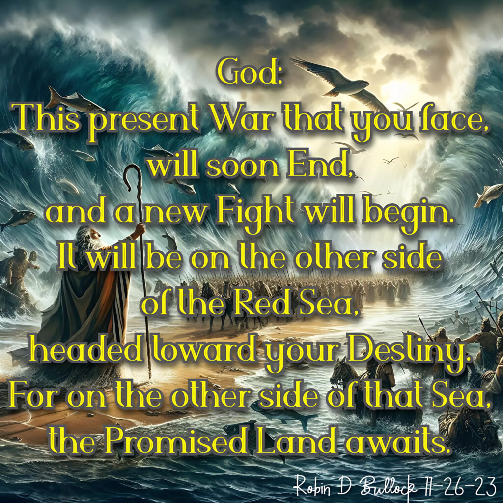 1:25:00 – This present war that you face, will soon end, and a new fight will begin. It will be on the other side of the Red Sea, headed toward your destiny. For on the other side of that sea, the promised land awaits. What Promised Land, asks the Lord? it’s the one that I promised you in Psalm 8. It will be the promised land of your position in Me, says The King. And I am going to give a new prophetic Song, Sound, and Word, coming from My word, from the other side of Eternity… Soon it will begin. And for you it will never end.