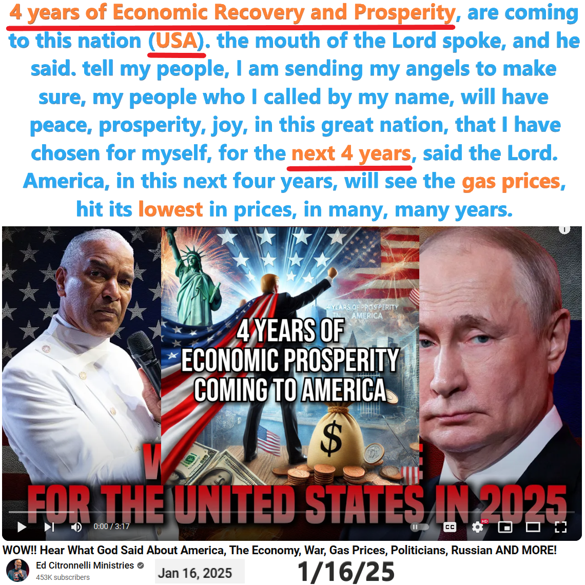 4 Years of Economic Prosperity coming to America. Prophecy by Ed Citronnelli on 1/16/25. See partial transcript and video link below: