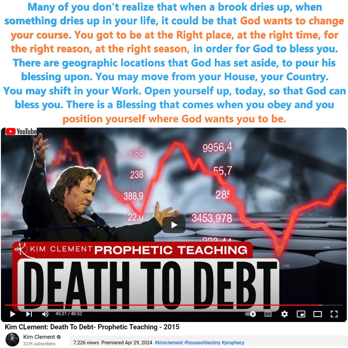 Kim CLement: Death To Debt- Prophetic Teaching – 2015