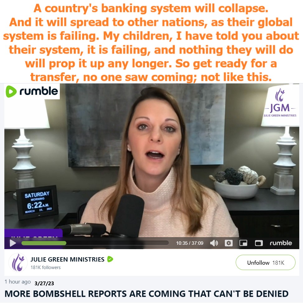 On 3/27/23 Julie Green shared a new Prophetic message regarding the Wealth Transfer and Banks. Please see video link, and partial transcript below.
