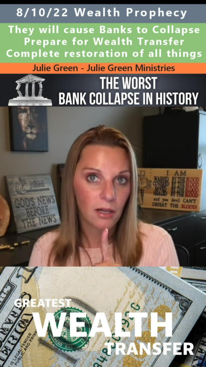 They will cause a bank collapse. Prophecy by Julie Green on 8/10/22. See partial transcript and video link below: