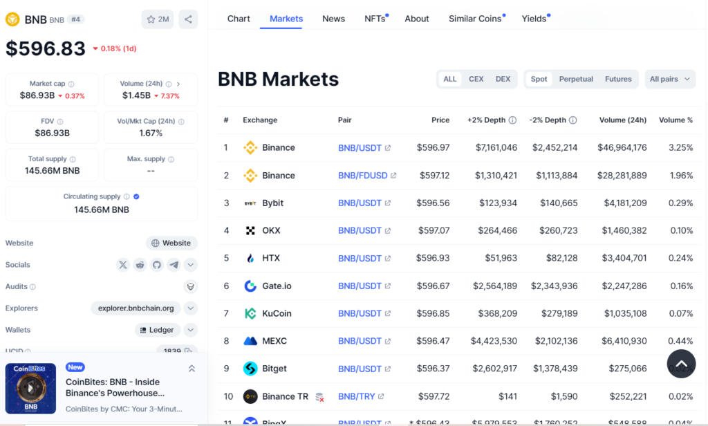1. Buy BNB Token on an Exchange