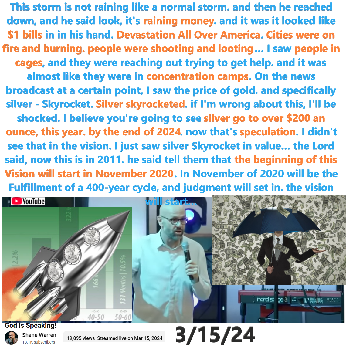 Judgement will start in November? Silver will Skyrocket. Dollar will Crash. Prophecy by Shane Warren on 3/15/24. See partial transcript and video link below:
