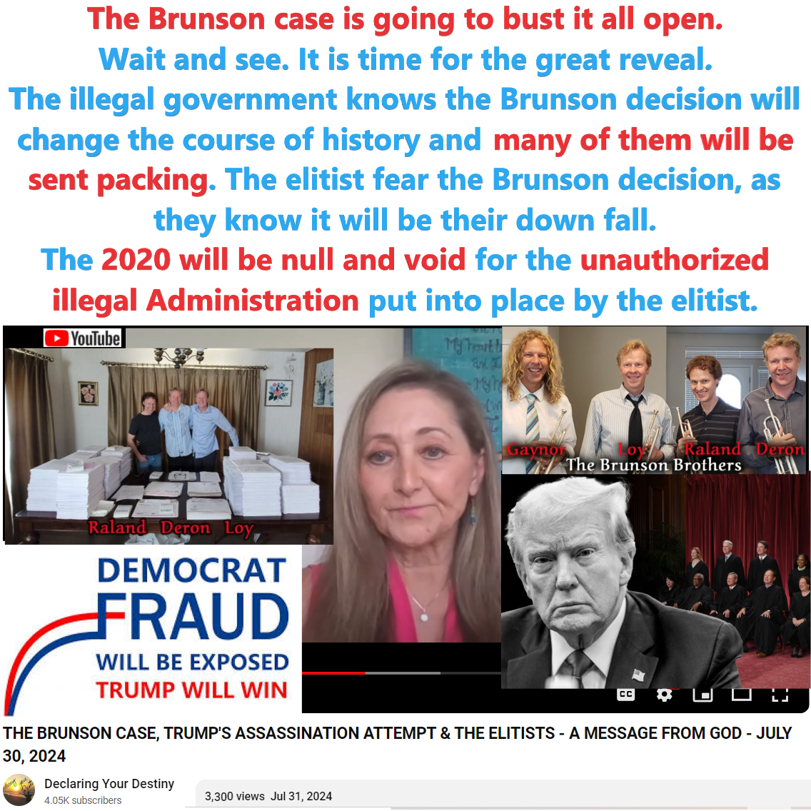 The Brunson Brothers Supreme Court Case for the 2020 Election will burst it all open prophecy by Carolyn Dennis from Declaring Your Destiny Channel. See partial transcript and video link below: