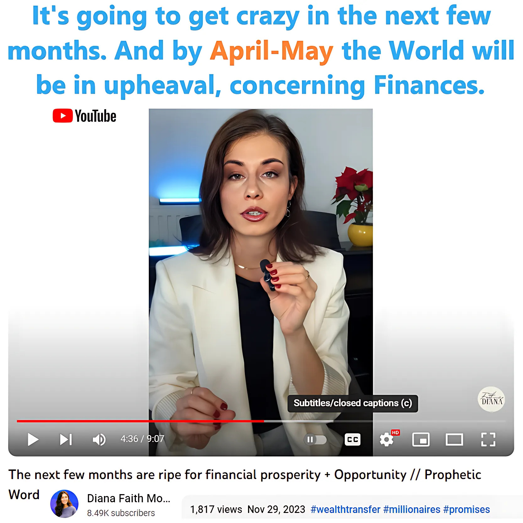 Diana Faith Movement channel shared a prophetic word regarding the coming financial upheaval. See partial transcript and video link below:
