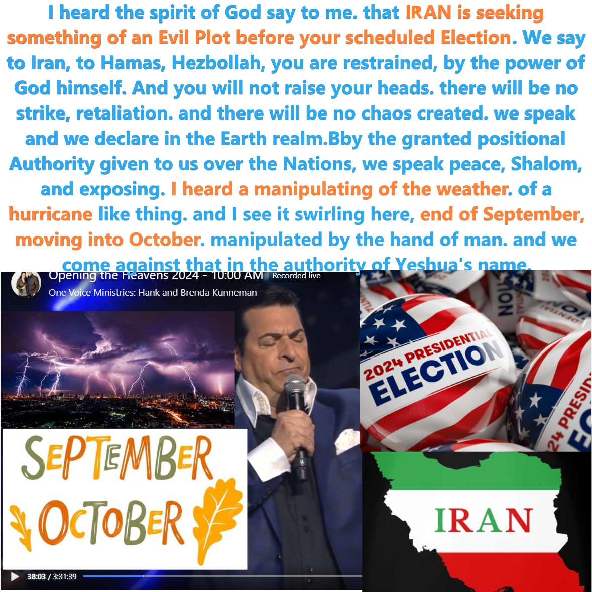 Iran evil plot before U.S. Elections. Weather Manipulation. Prophecy by Hank Kunneman on 9/15/24. See partial transcript and video link below: