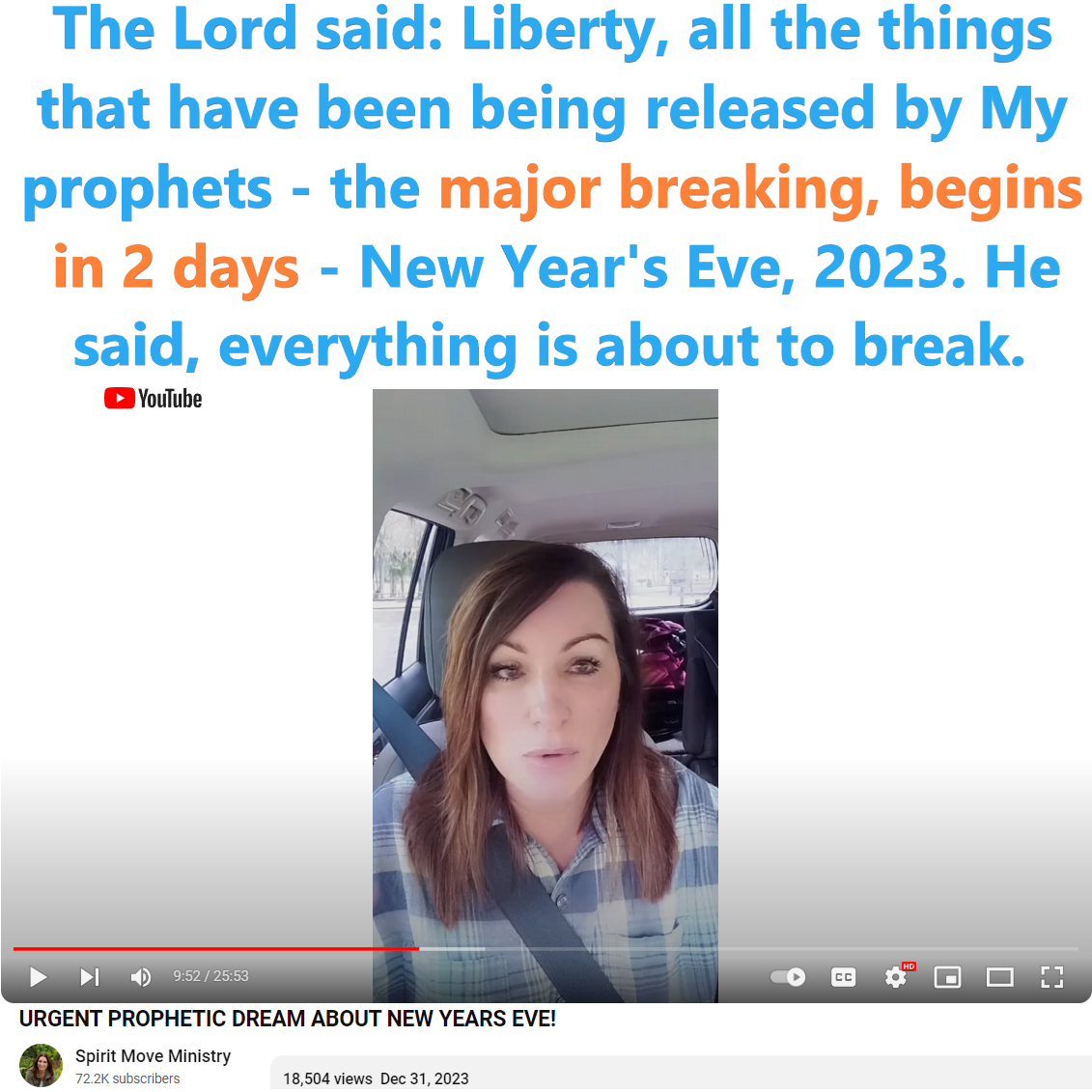 The major breaking, begins in 2 days – New Year’s Eve, 2023. Prophecy by Liberty Turnipseed (Spirit Move Ministry) on 12/30/23. See partial transcript and video link below: