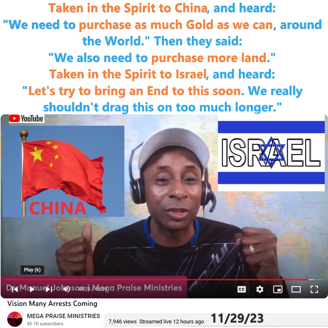 New Prophetic Word about Gold and China and War in Israel by Manuel Johnson on 11/29/23. See partial transcript and video link below: