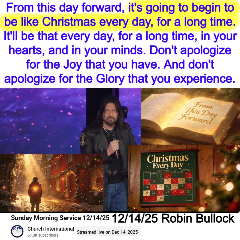 From this day forward, it’s going to begin to be like Christmas every day, for a long time. Prophecy by Robin Bullock on 12/14/25. See partial transcript, AI Summary, and video link below:
