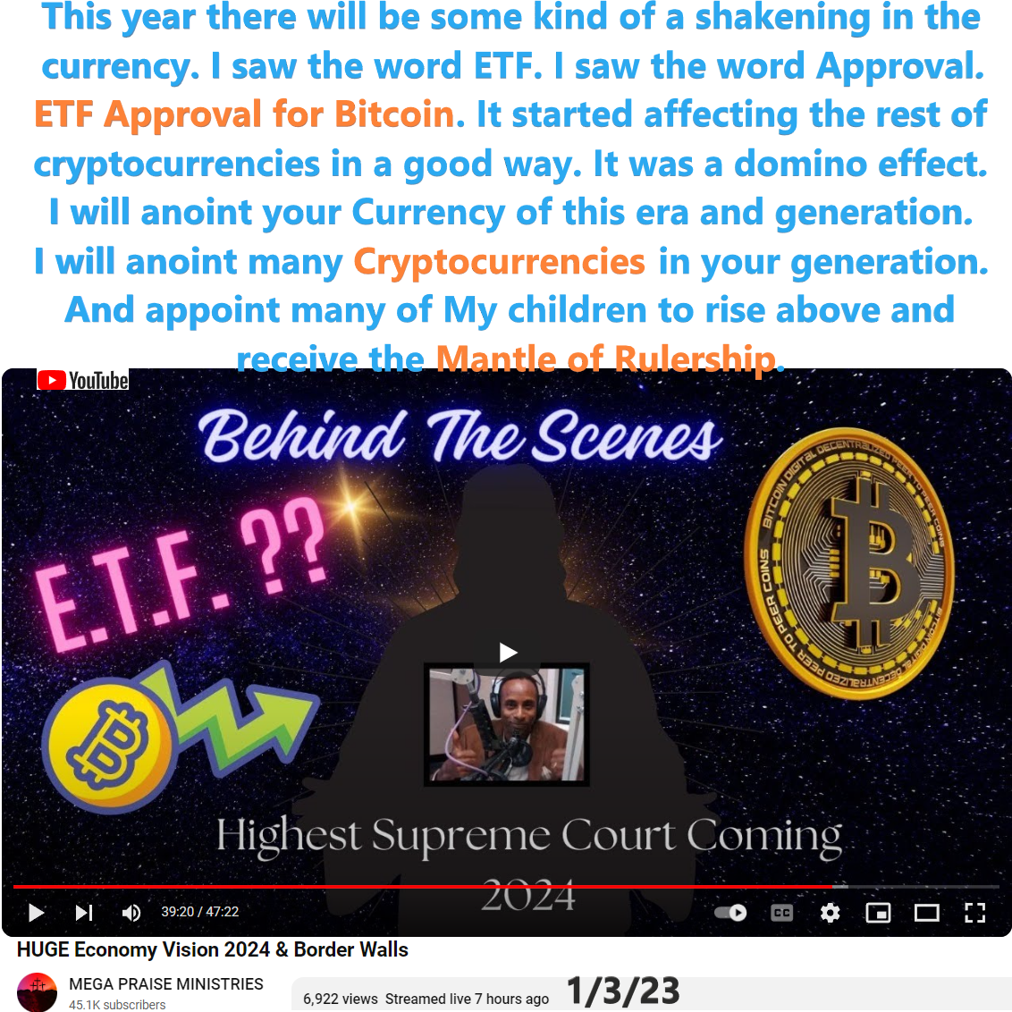 Bitcoin ETF Approval crypto prophecy by Manuel Johnson on 1/3/24. See partial transcript and video link below: