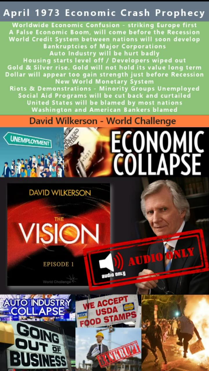 New Monetary System, Gold & Silver, Recession, Bankruptcies. Prophecy by David Wilkerson in April 1973. See transcript and video link below: