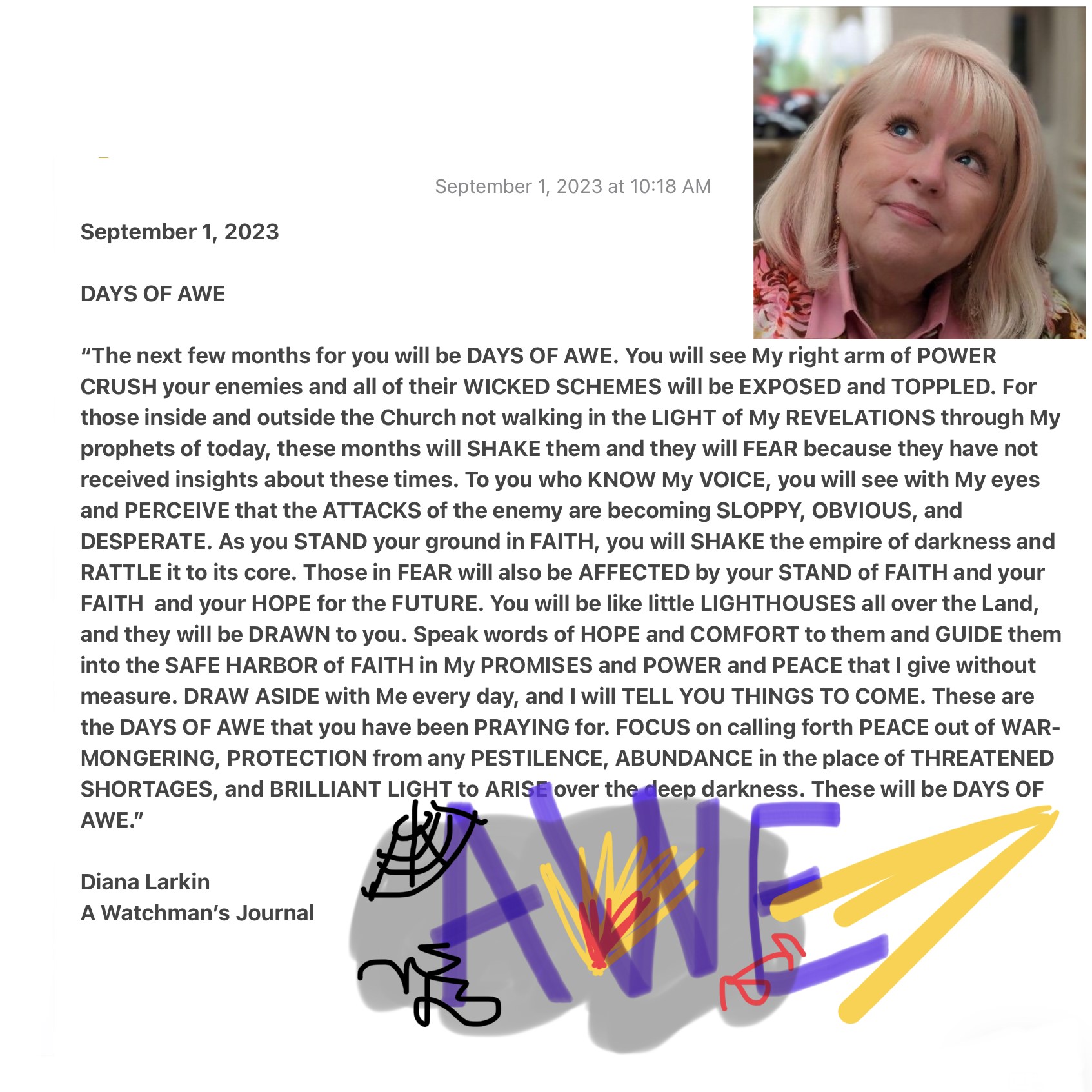 “THE NEXT FEW MONTHS FOR YOU WILL BE DAYS OF AWE” – 9/1/2023 Prophetic Word from Diana Larkin