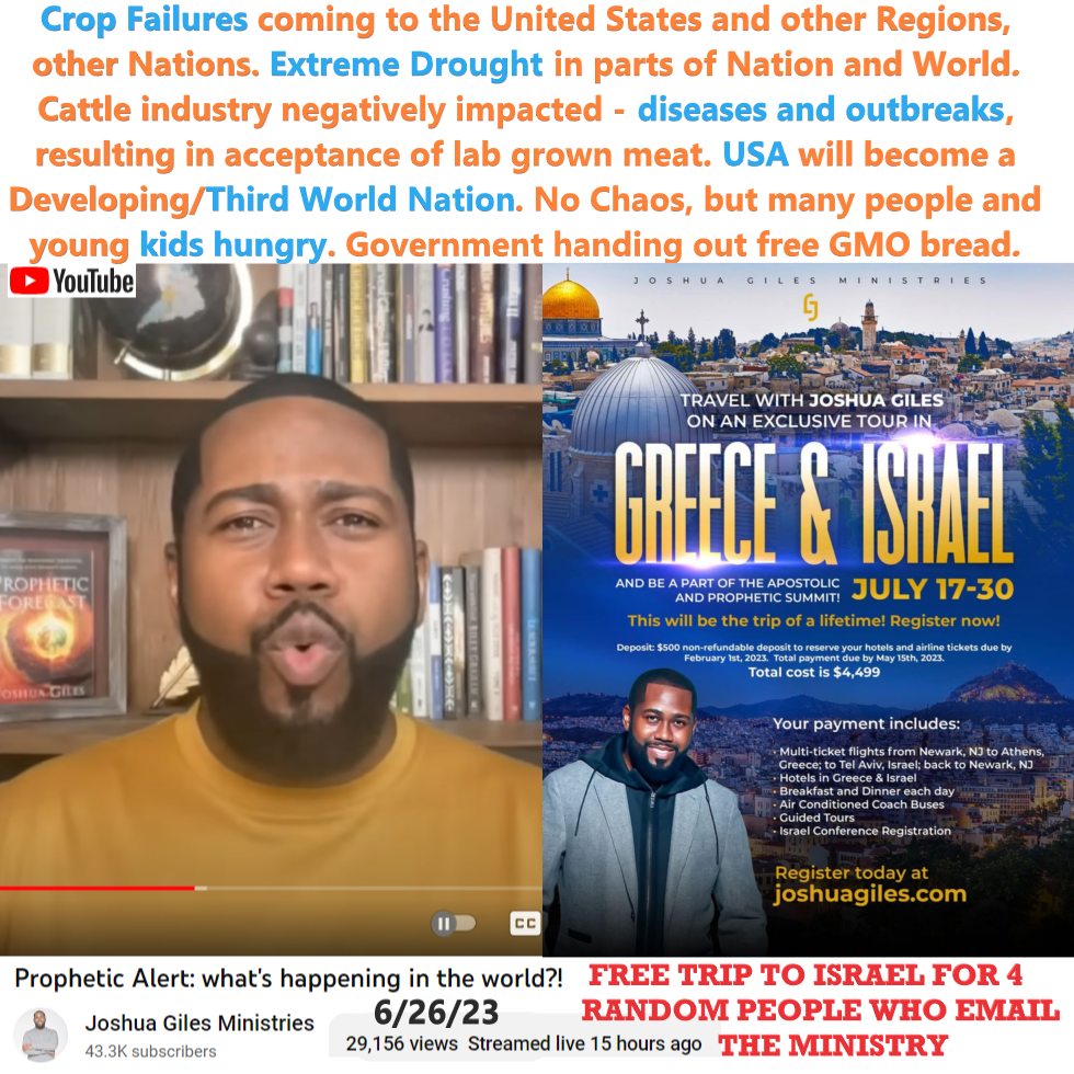 14:30 – I saw crop failures coming to the United States and other regions other nations. These failures will be the worst that we’ve seen in more than 50 years. It wasn’t just a natural thing, it was manufactured by men. Also natural phenomena…. It will be in Extreme Drought that we would see in different parts of the nation and different parts of the world. When it comes an assessors must begin to pray and speak and command the rain to water the earth. We will see the cattle industry negatively impacted.