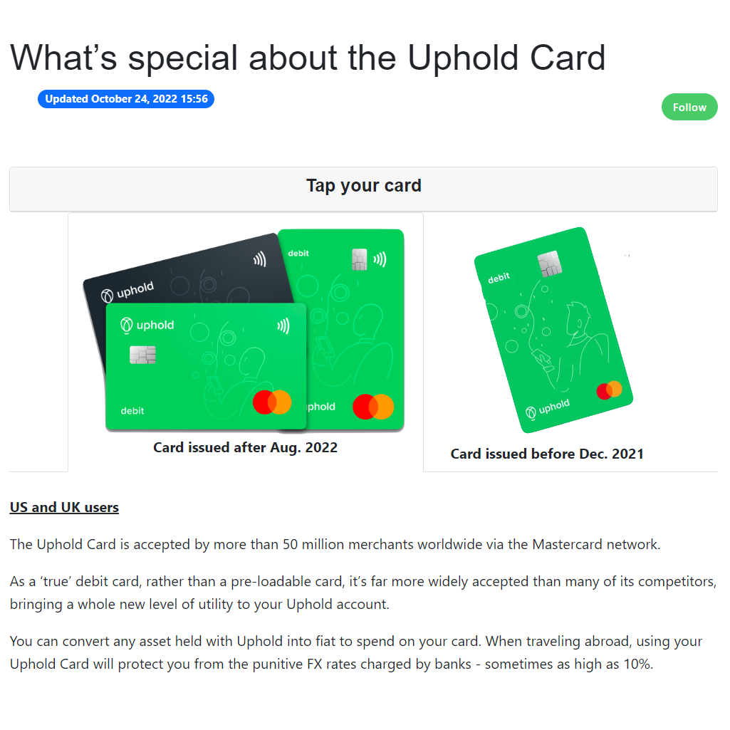 Note: Uphold closed the crypto card in USA, and only the UK card is still available