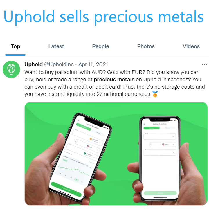 Here is a youtube community post I made regarding Precious Metals on Uphold: