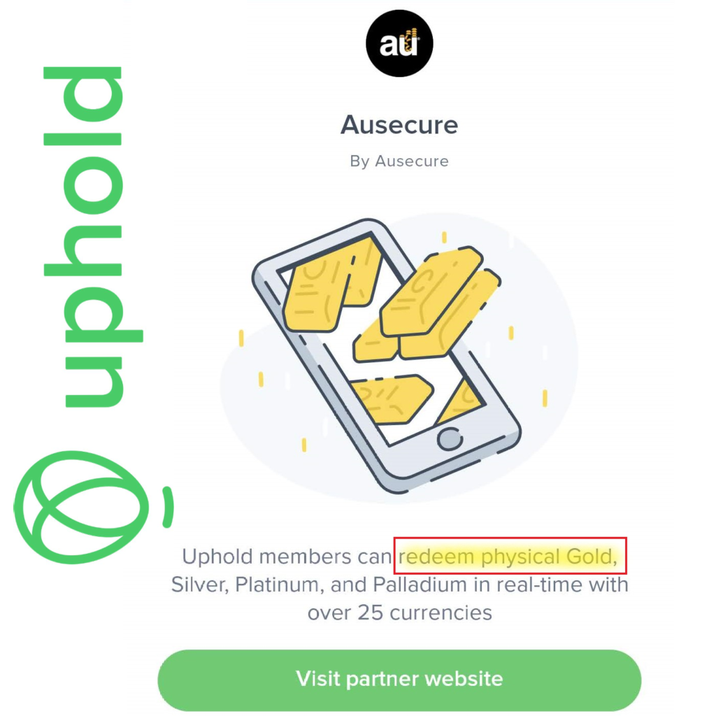 So looks like Uphold lets us buy Gold, which they store for free. And when time comes we can quickly sell or swap for another precious metal, crypto, or stock. Or request that Uphold deliver the physical Gold to our home (through their Ausecure partner)