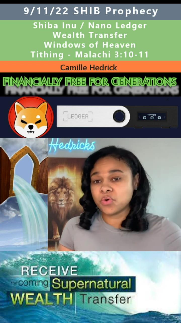 Camille Hedrick presents a prophetic message centered on a supernatural wealth transfer and specific guidance regarding cryptocurrency investments. Based on a vision and a dream, she asserts that Dogecoin lacks value and that believers should instead invest in Shiba Inu. In her dream, the word “Shiba” was associated with the buttons that roll down truck windows, which she interprets as the “windows of heaven” opening over her followers. She specifically instructs her audience to store their funds on a Nano Ledger rather than in traditional banks, warning that the banking system will fail and an economic crash is imminent.
