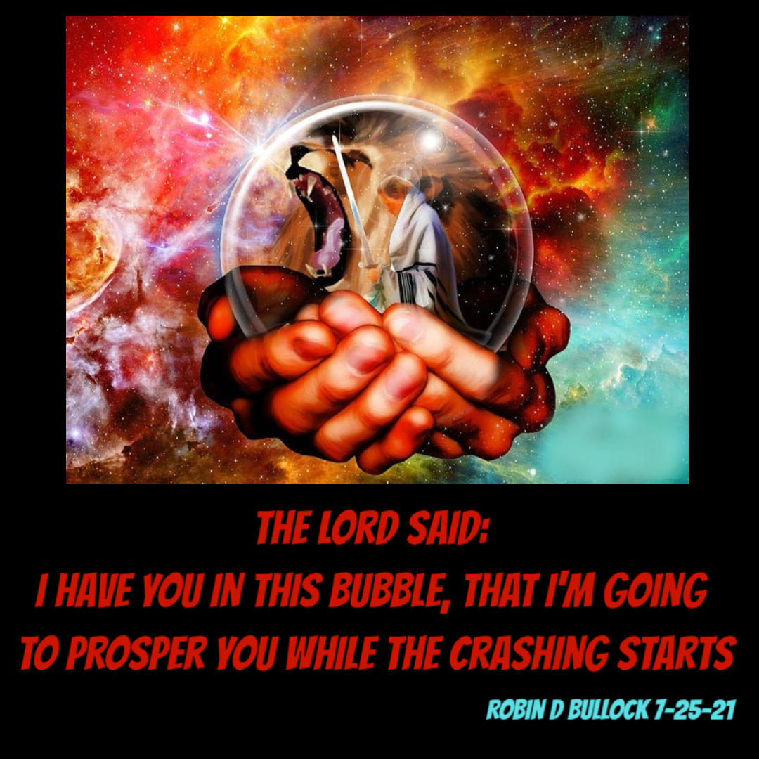 The Lord said: I have you in this bubble, that I’m going to prosper you while the crashing starts (Robin D Bullock 7-25-21)