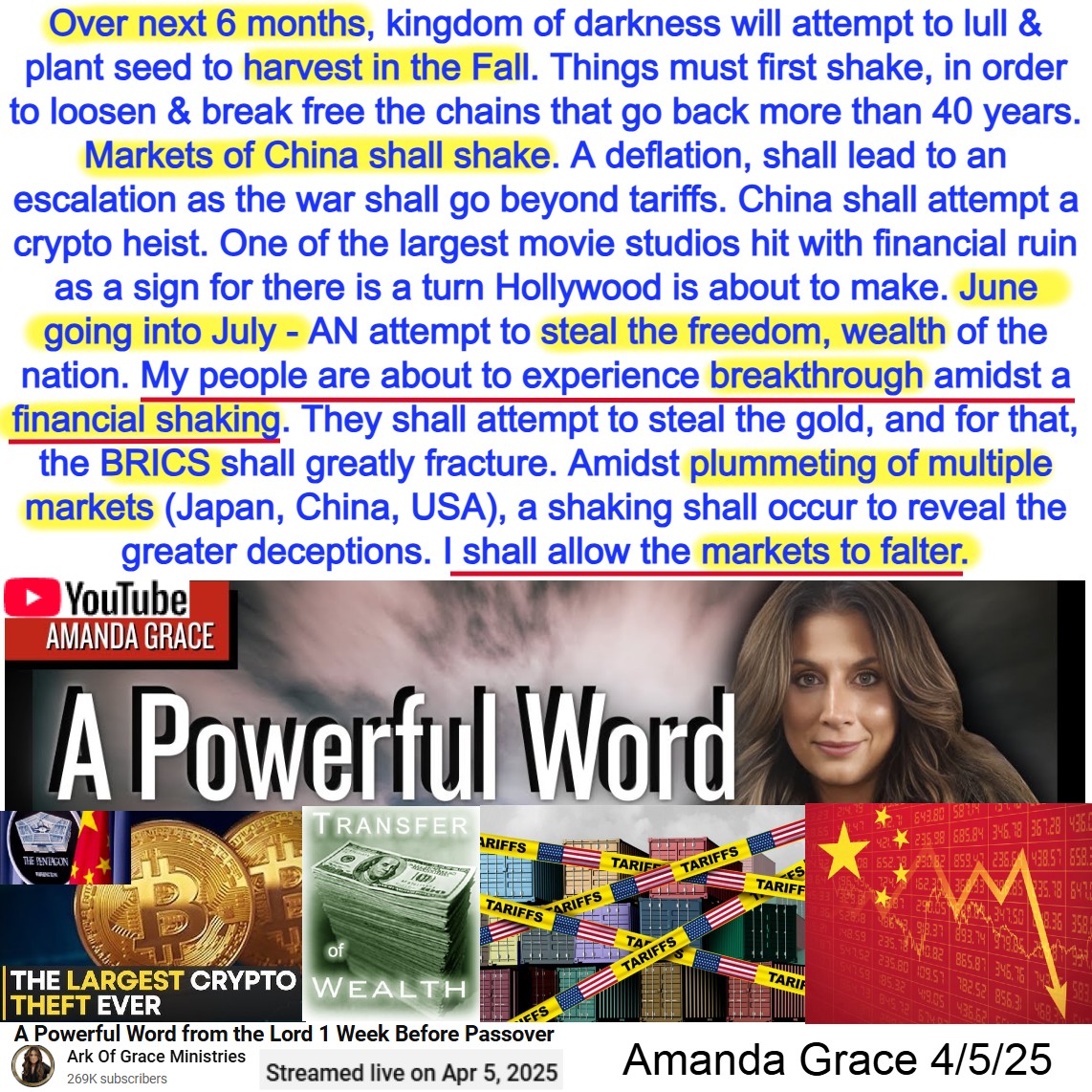My people are about to experience breakthrough amidst a financial shaking. Prophecy by Amanda Grace on 4/4/25. See my summary, partial transcript, and video link below: