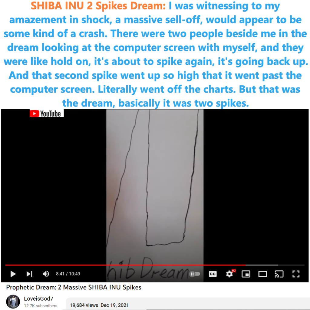 Did you know that multiple people have received dreams saying that Shiba Inu will have 2 Spikes? One of them saw 2 crashes (or some describe as upside down spikes). See video links below: