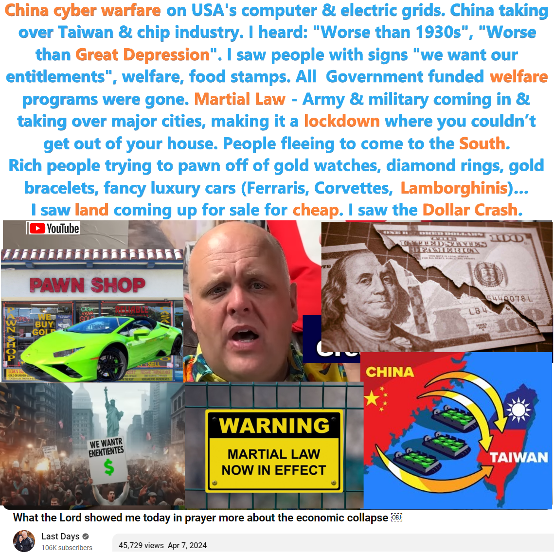 Brandon Biggs at Last Days shared a new shocking prophecy about the Economic Crash and Great Depression coming to America. See partial transcript and video link below: