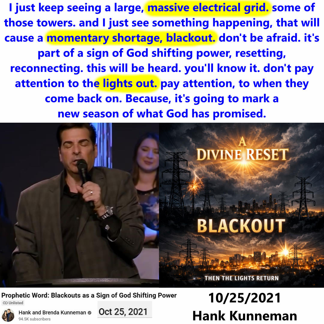 Momentary Blackout is a sign of God shifting power, resetting. Prophecy by Hank Kunneman on 10/25/2021. See partial transcript and video link below: