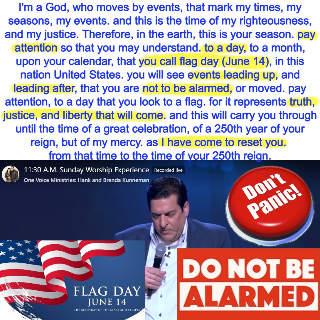 Pay Attention to the Flag day (June 14). Do not me alarmed or moved. Prophecy by Hank Kunneman on 4/13/25. See partial transcript and video link below: