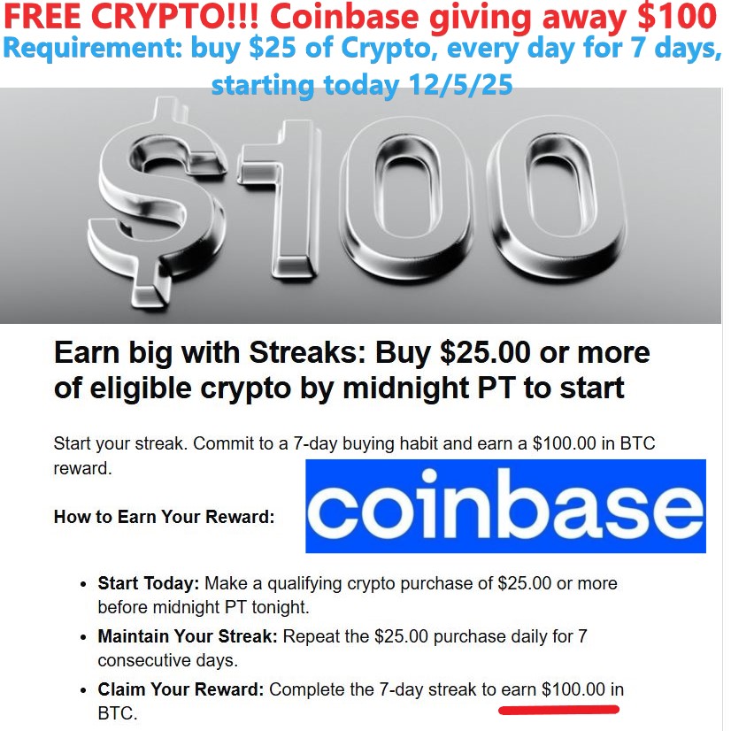 FREE CRYPTO!!! Coinbase giving away $100 worth of BTC.