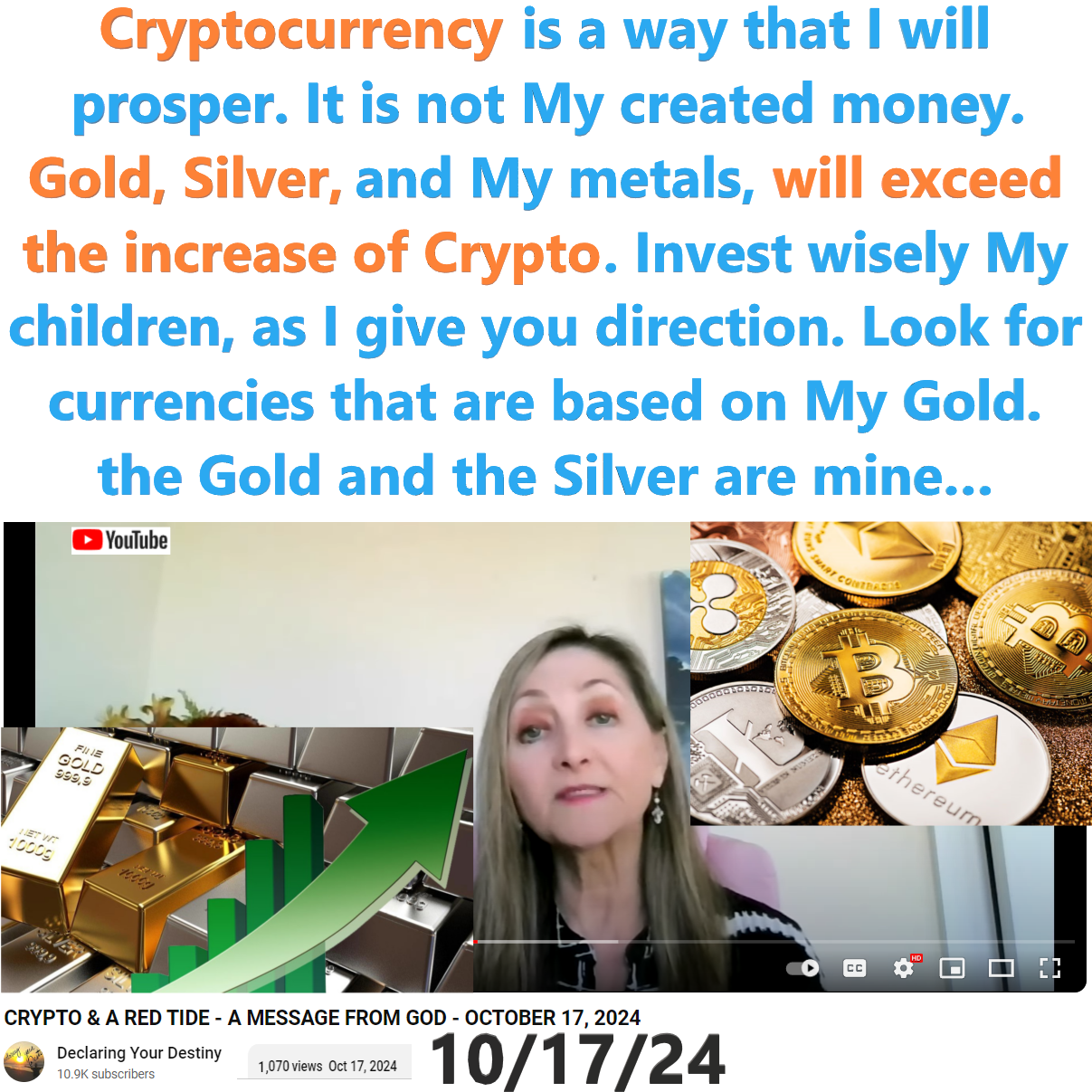 Crypto, Gold and Silver prophetic word by Carolyn Dennis at Declaring Your Destiny on 10/17/24. See partial transcript and video link below: