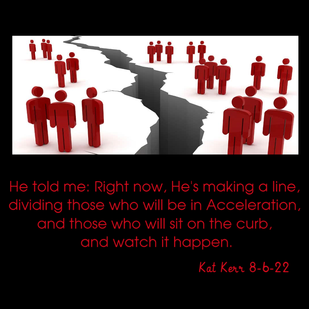He told me: Right now, He’s making a line, dividing those who will be in Acceleration, and those who will sit on the curb, and watch it happen. (Kat Kerr 8-6-22)