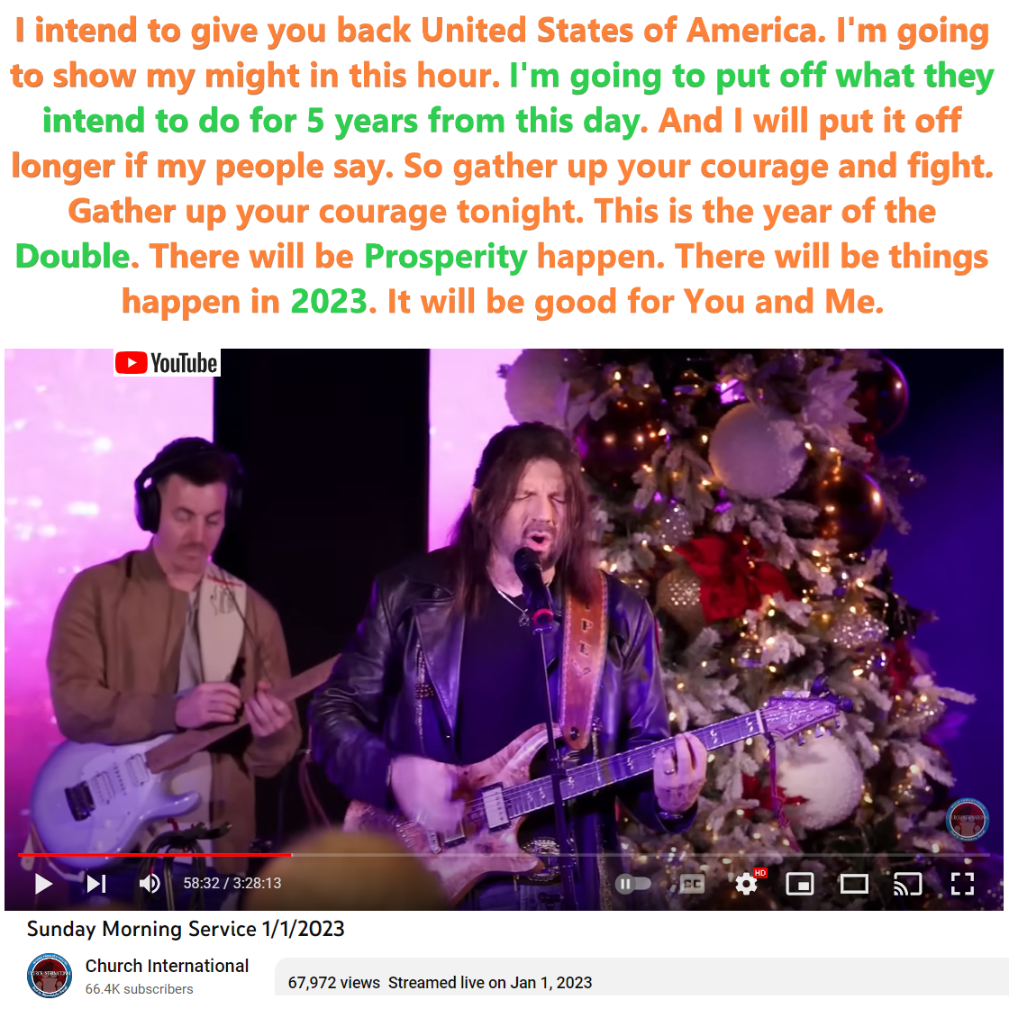 I’m going to put off what they intend to do for 5 years from this day. I will put it off longer if my people say. Gather up your courage & fight. On 1/1/23 Robin D Bullock ( Robin D. Bullock ) spoke a new prophecy for the year 2023. Please see video link and partial (major topics) transcript below: