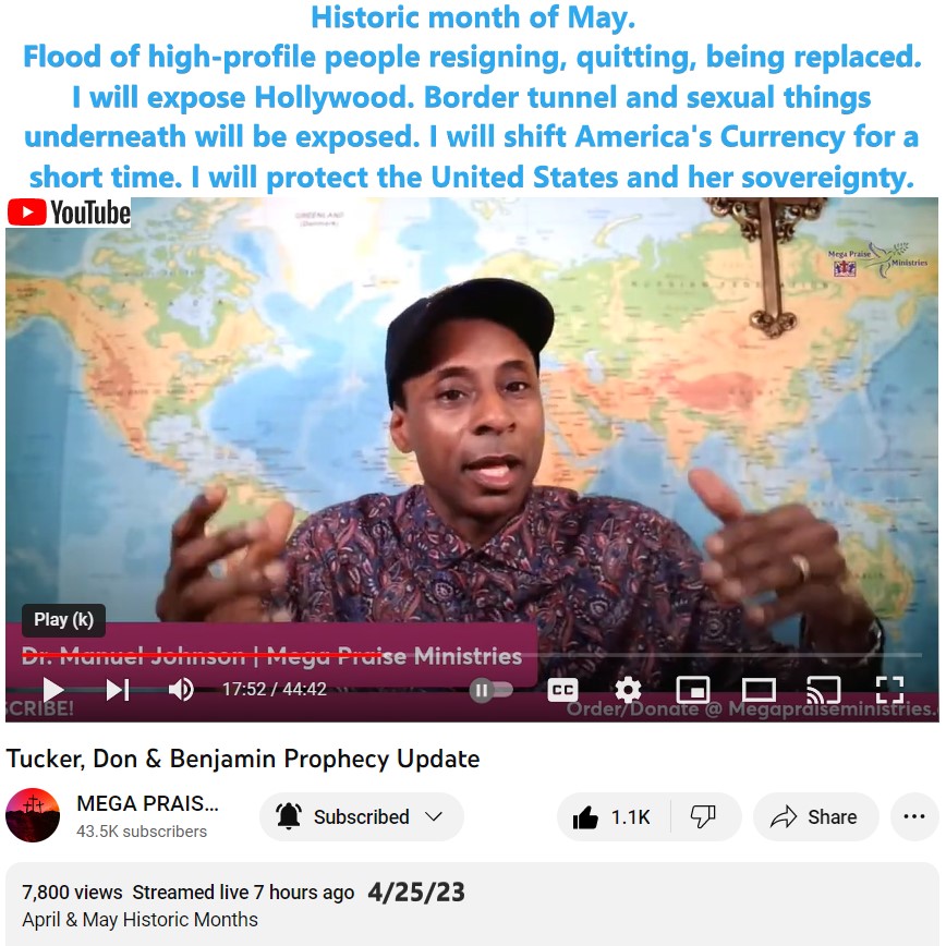 On 4/25/23 Manuel Johnson (@megapraiseministries123 ) shared a new Prophetic word. Please see video link, and partial transcript below.