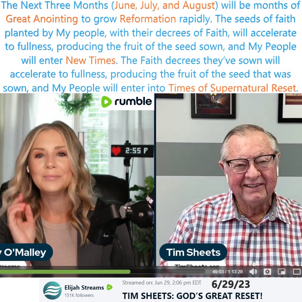 Tim Sheets shared a new Prophetic Word regarding June, July, and August, on his own channel and on Elijah Streams. See transcript and youtube/rumble video links below: