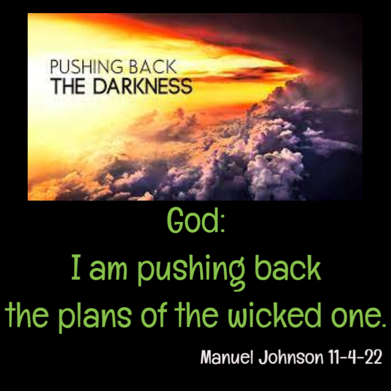 God: I am pushing back the plans of the wicked one. I will raise up Israel first. and what you call the United States will follow. (Manuel Johnson 11-4-22)