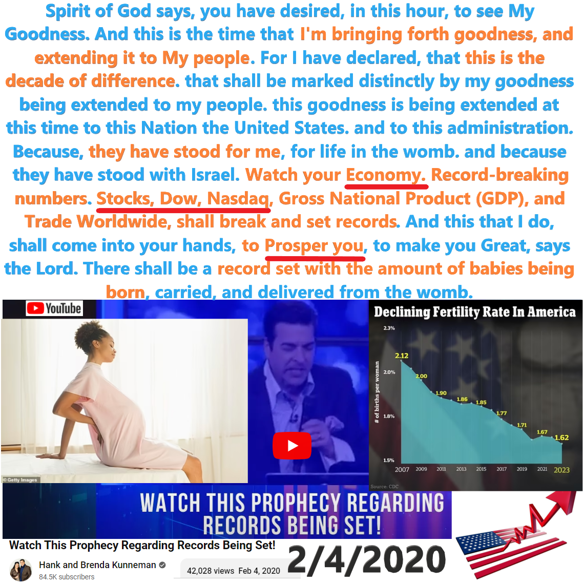 2020 Prophecy: Record amount of babies being born, Record-breaking numbers in Stocks, GDP and Trade worldwide. Prophecy by Hank Kunneman on 2/4/2020. See transcript and video link below:
