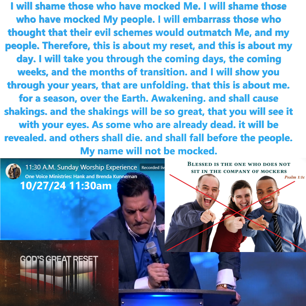 God: I will Shame those who have Mocked Me. Prophecy by Hank Kunneman on 10/27/24 11:30am. See partial transcript and video link below: