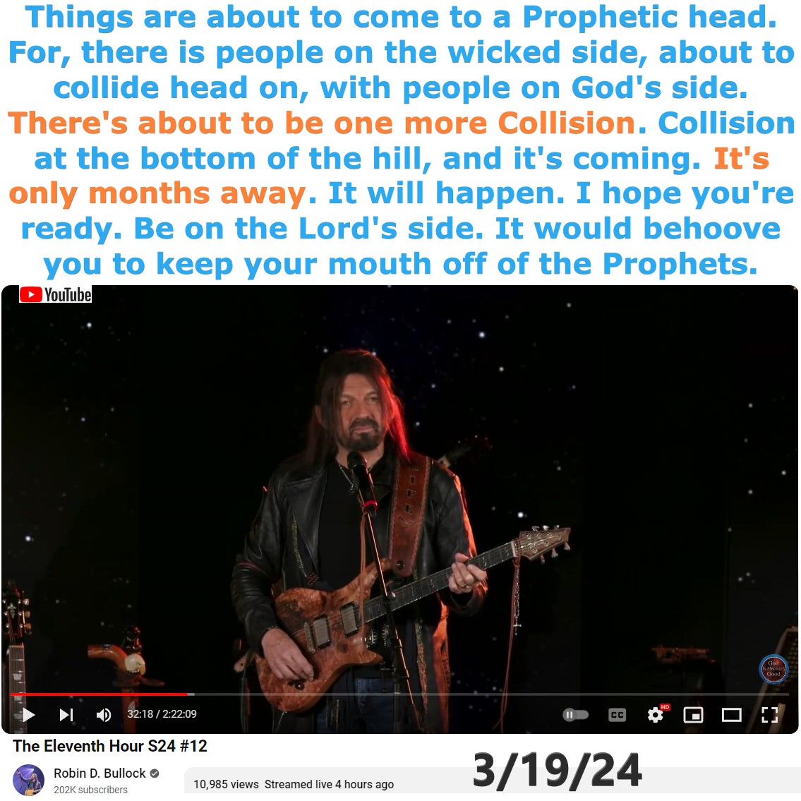 One More Collision coming, prophecy by Robin D Bullock on 3/19/24. See partial transcript and video link below: