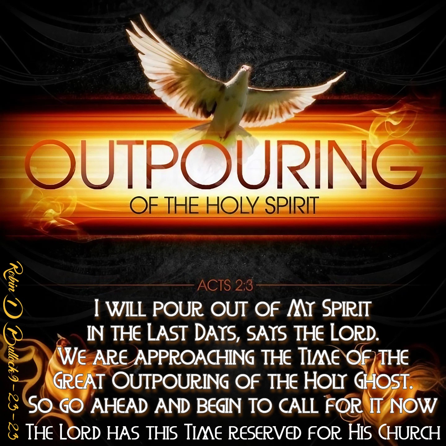 I will pour out of My Spirit in the Last Days, says the Lord. We are approaching the Time of the Great Outpouring of the Holy Ghost. So go ahead and begin to call for it now. The Lord has this Time reserved for His Church. (Robin D Bullock 9-23-23).