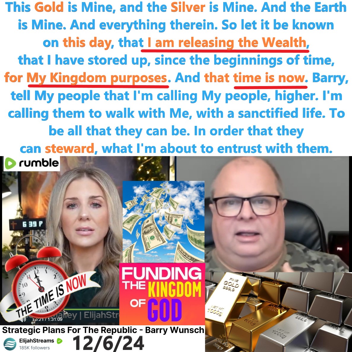 God: I am Releasing the Wealth. That TIME is NOW. Prophecy by Barry Wunsch on 12/6/24. See partial transcript and video link below: