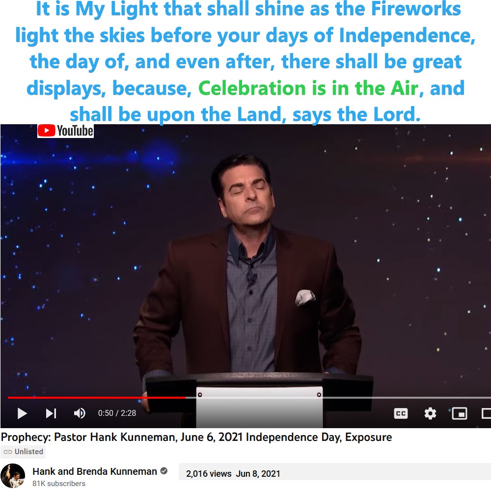 I found an old (Unlisted) Prophecy from June 2021 by Hank Kunneman (@HankandBrendaKunneman ) about Celebrations coming after Independence Day. Makes me wonder, if he was referring to this year – July 2023 Independence Day?