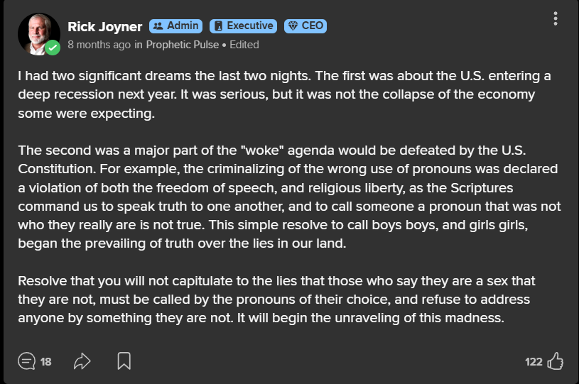 3/4/24 Rick Joyner: I had two significant dreams the last two nights. The first was about the U.S. entering a deep recession next year. It was serious, but it was not the collapse of the economy…